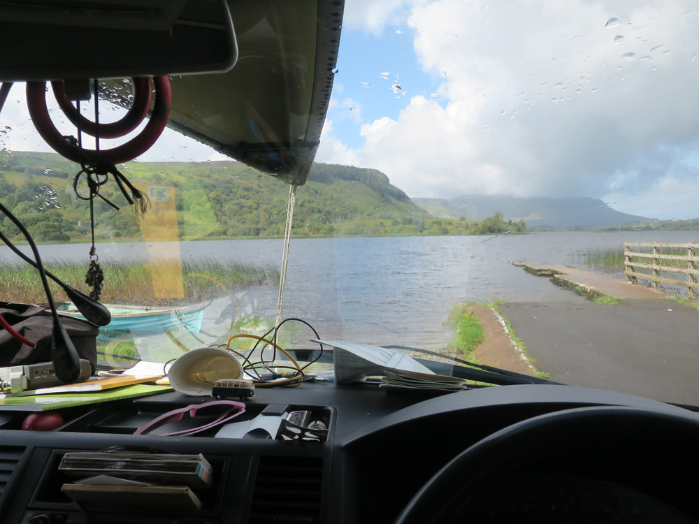 The painting canoe, Fingers grow gnarled in the watery pass refers to the Bloody Pass, a secretive crossing place on the border where Shipsides and Beggs crossed in their canoe. It is a place of a Williamite massacre, where the bodies of the Jacobean dead formed a land bridge and coloured the waters nearby. Pushing through reeds, you have to trespass, to cross the border here now and the overwhelming feeling is of the spookiness of knowing the shallow waters hold the bodies of several hundred men.