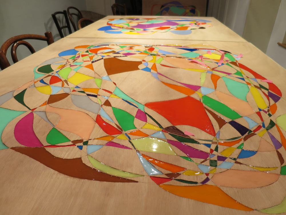 A series of interactive flatfooting dance-decks. These wooden dance-decks are designed with an internal system to amplify and modify the sound produced. The graphic design derives from overlays of USA, Mexican, Northern and Southern Ireland Border States. They play with the idea of borders and boundaries - but do so with a sense of neighbourliness, when people come together and share. The Appalachian flatfooting tradition link to forms of Irish and English folk dance and is another wonderful example of reformulated and transformed culture.