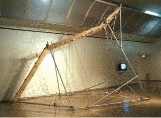 Shipsides, despite appearances, is not therefore outside of the technological approach. The maps, diagrams, walking boots, his engagement with mountaineering magazines and incorporation of manufactured climbing holds into the structures etc, means that he too is engaged in a mediated technological experience, it is simply a slowed-down version. The act of climbing or mountaineering fits with Urry’s notion of the kinaesthetic sense extending human capacities into the external world. Shipsides’ works represents the ‘life-size’ experience which although multidimensional and panoramic remains a feasible experience.