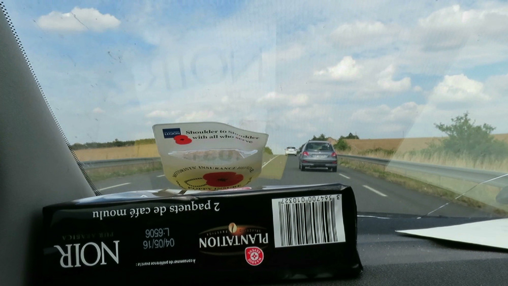 The title RED FLOWERS ROUNDABOUT is an open reference but was triggered by the red poppy flower car windscreen sticker captured in the video (behind the coffee packet) and combined with the geographic locality and the theme of the Magic Roundabout children’s TV programme.