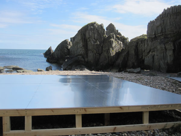 One aspect which I love and is key for me is that the materials and form are so incongruous for this natural location. It goes against all the logical thinking of locational and environmental empathy – but at on a visual, physical and emotional level it has complete empathy with the location – it absorbs and reflects the space – it hums in the location – sings loudly at time and deeply at other – but seems to hum with the vibrations of it’s surroundings. I don’t feel it dominates or territorializes the space – it gives a presence and sort of focus but the frame it offers is not like that of the traditional studio or venue stage – the frame includes the horizon and beyond. For the dancers it provides a focus but I feel in absolute relationship with what is around – I must ask them about how they feel it operates for them…