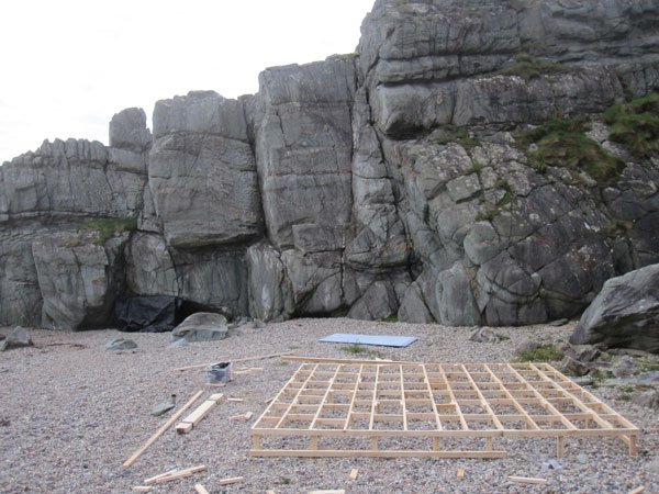 This was hard but had a sense of epic about it. Fitzcarraldo-esque. Many, many trips back and forth along the headland coast path, wood, timber, plywood, dibond, tools food, water etc etc. carry by carry it all needed to be moved.