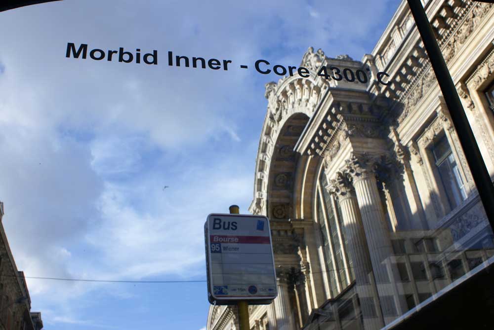 Malmeter creates a vertical navigatation of the horizonal city (via a bus route) relative to elevation / depth and mood. So as you move out of the city along the number 95 bus route you move from morbid to eurporic and from the inner core to the exosphere. The vinyl texts were installed on each outbound bus stop where that they could be viewed by passengers waiting and alighting the bus and by passerbys.